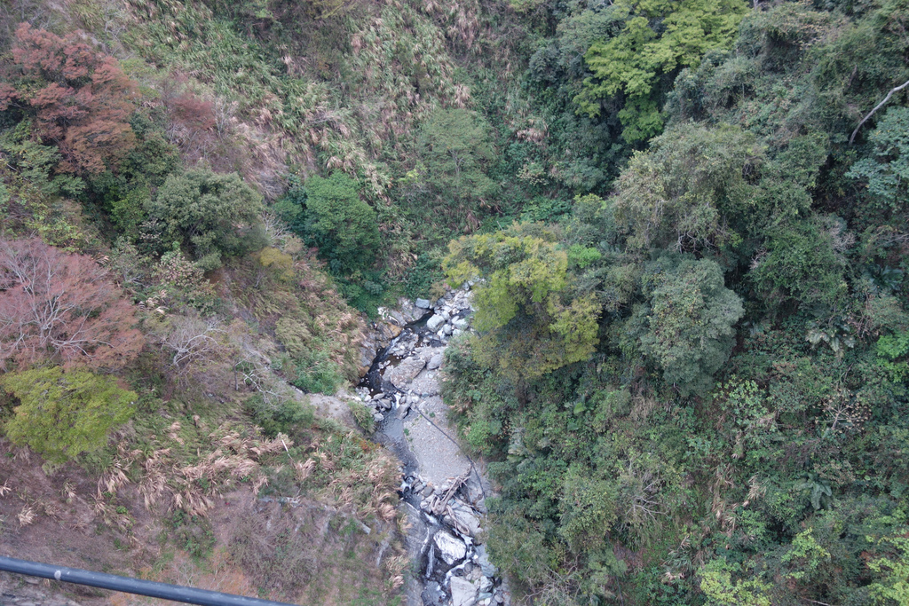 東埔吊橋下,距離地面一百多公尺,這就是萬丈深淵的感覺,下方這條溪流叫做沙里仙溪