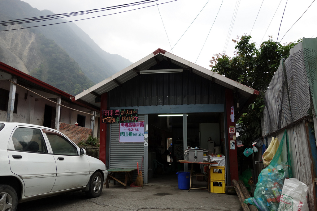 進入布農部落後,部落的路小小的,真的是滿滿的原住民,無法停車照相,於是我在賣竹筒飯山豬肉的店門口拍了一張