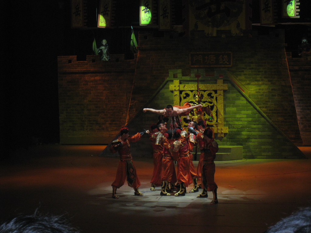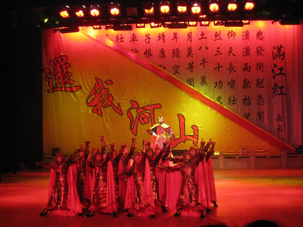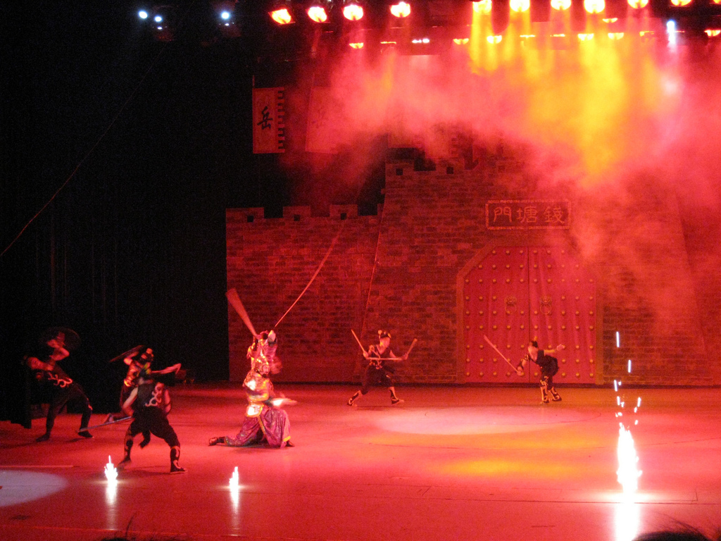 西湖夜秀敘述杭州的歷史,一開始就演出金戈鐵馬的場景,岳家軍