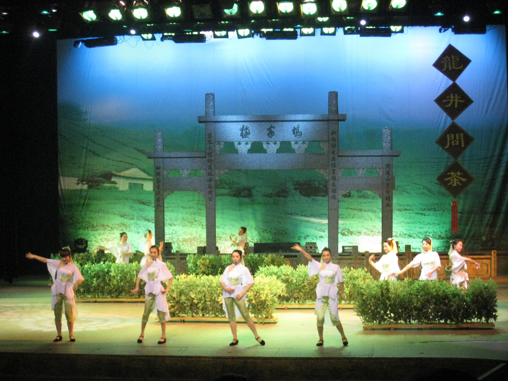龍井問茶篇,杭州西湖畔出產龍井茶,龍井茶的茶種是綠茶,採茶女一邊跳舞一邊採茶