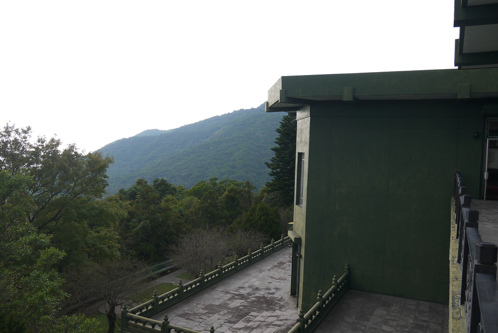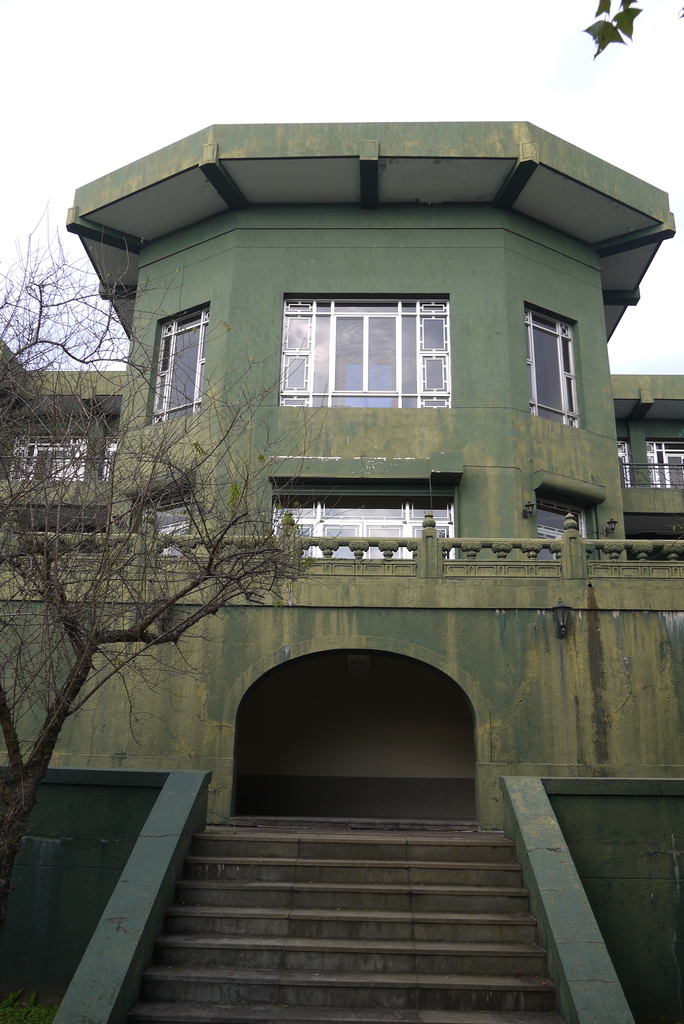 陽明書屋正面,整棟建築使用綠色掩蔽物,我想當年台灣戒嚴時期老蔣住所是需要安全的