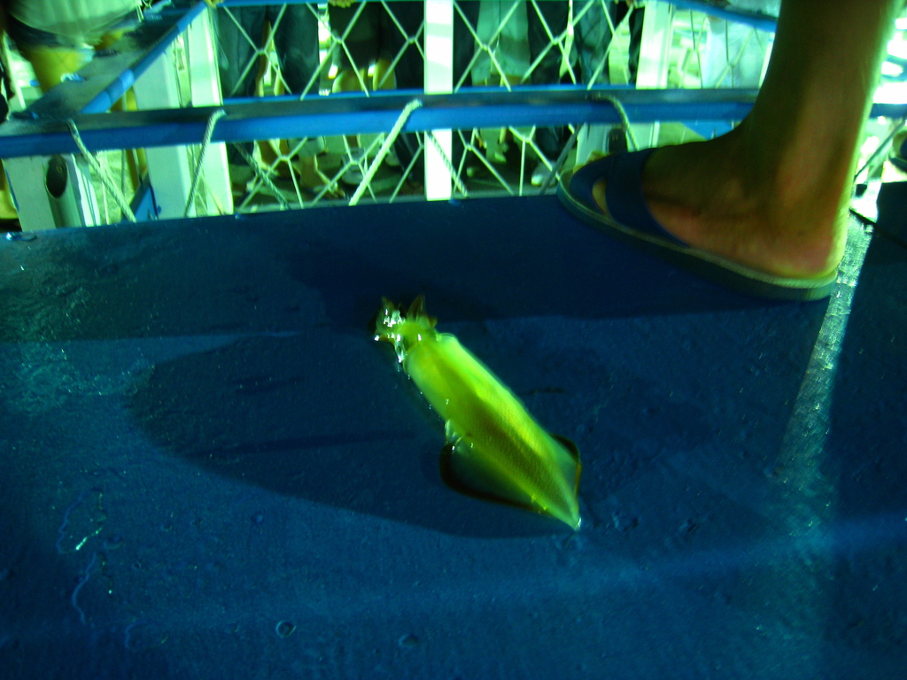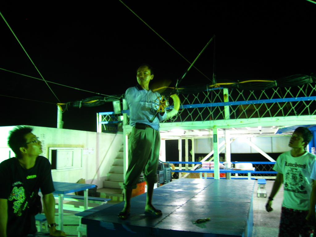 船家輕輕鬆鬆就掉了一尾小管上來,我也依照這個方式開始釣小管,沒想到掉了一個晚上,連一隻小管也沒勾著...這種釣小管活動真的需要運氣和緣分啊,不是每一個人來釣都有