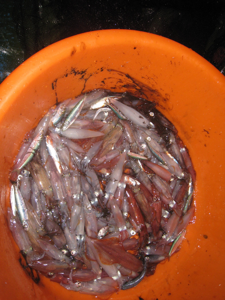 船家收網之後,撈了一大桶的小管,分成好幾桶來裝,真的好多好多啊!! 早知道用網子捕比較快,在那邊用鉤子釣半天