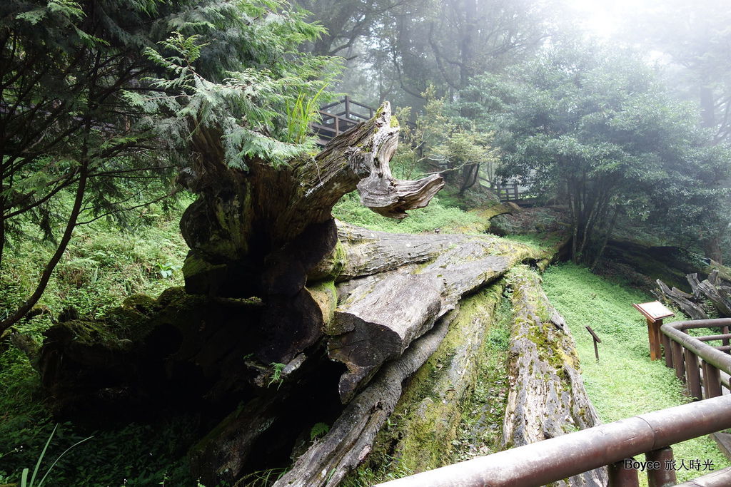 第一代阿里山神木,靜靜地倒臥在阿里山鐵道旁。