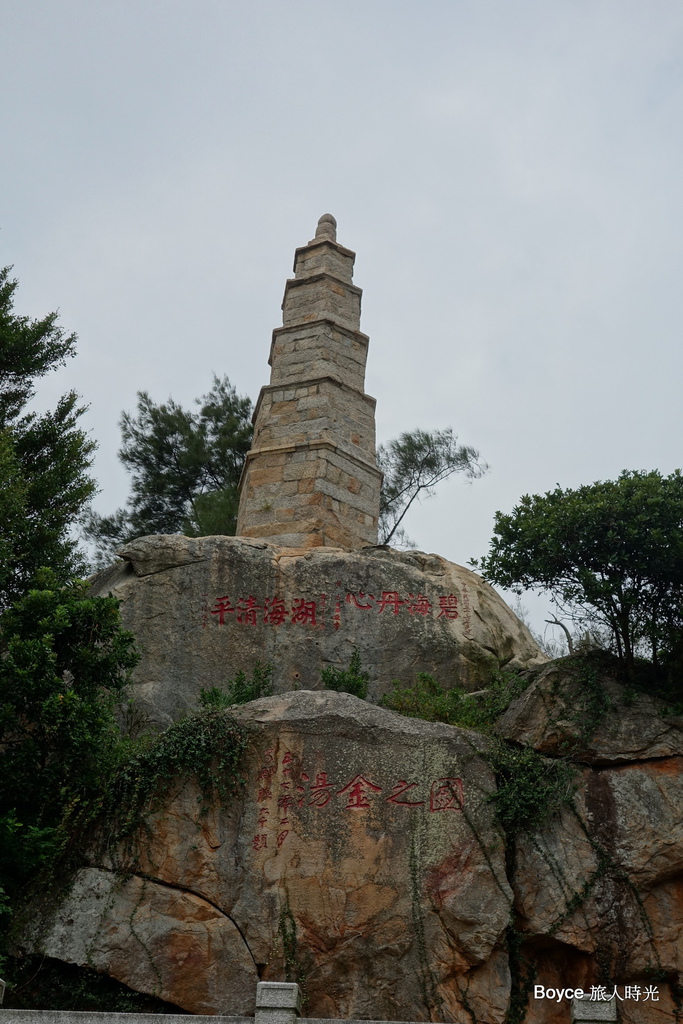 在文台寶塔下方有"國之金湯"四字,是著名藝術大師張大千題字,上方有碧海丹心四字,真的是很愛題字啊..
