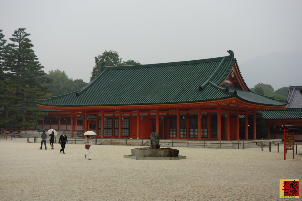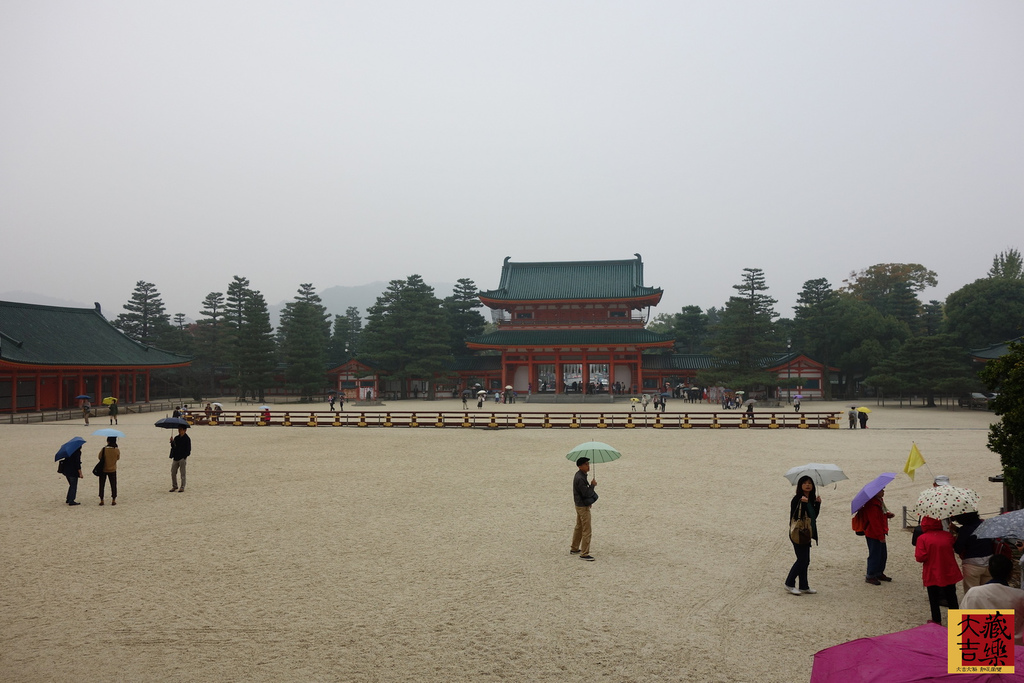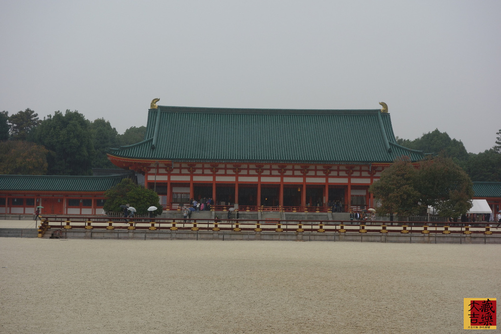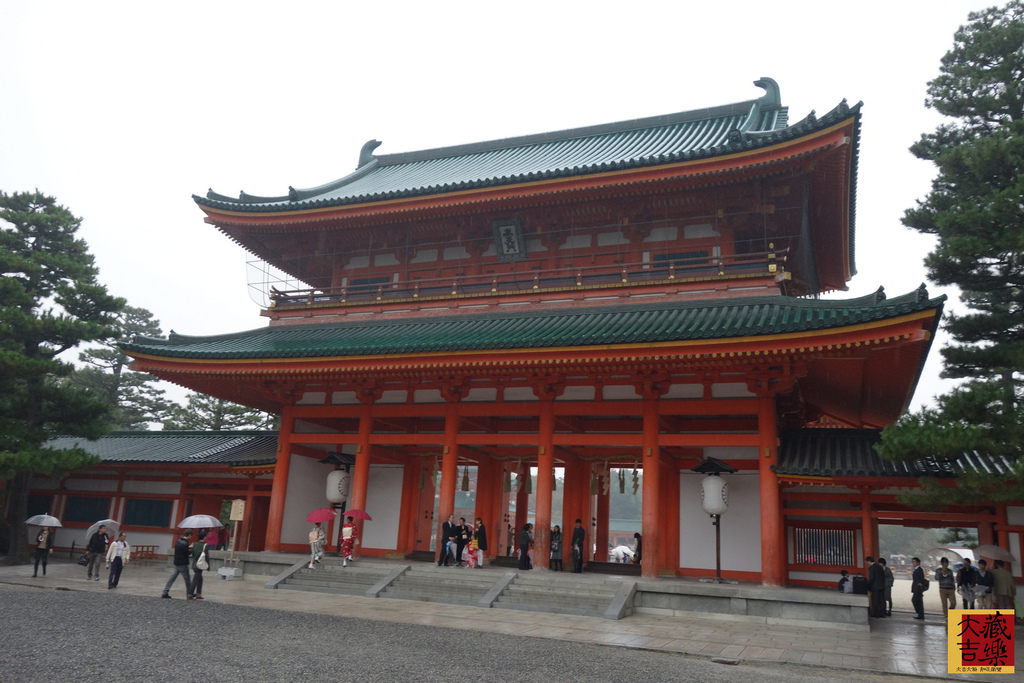 應天門,京都的天氣很朦朧,天上一直下著小雨,我緩緩地走入平安神宮,這座神宮是到京都旅遊團體經常安排的行程,不需要門票費用
