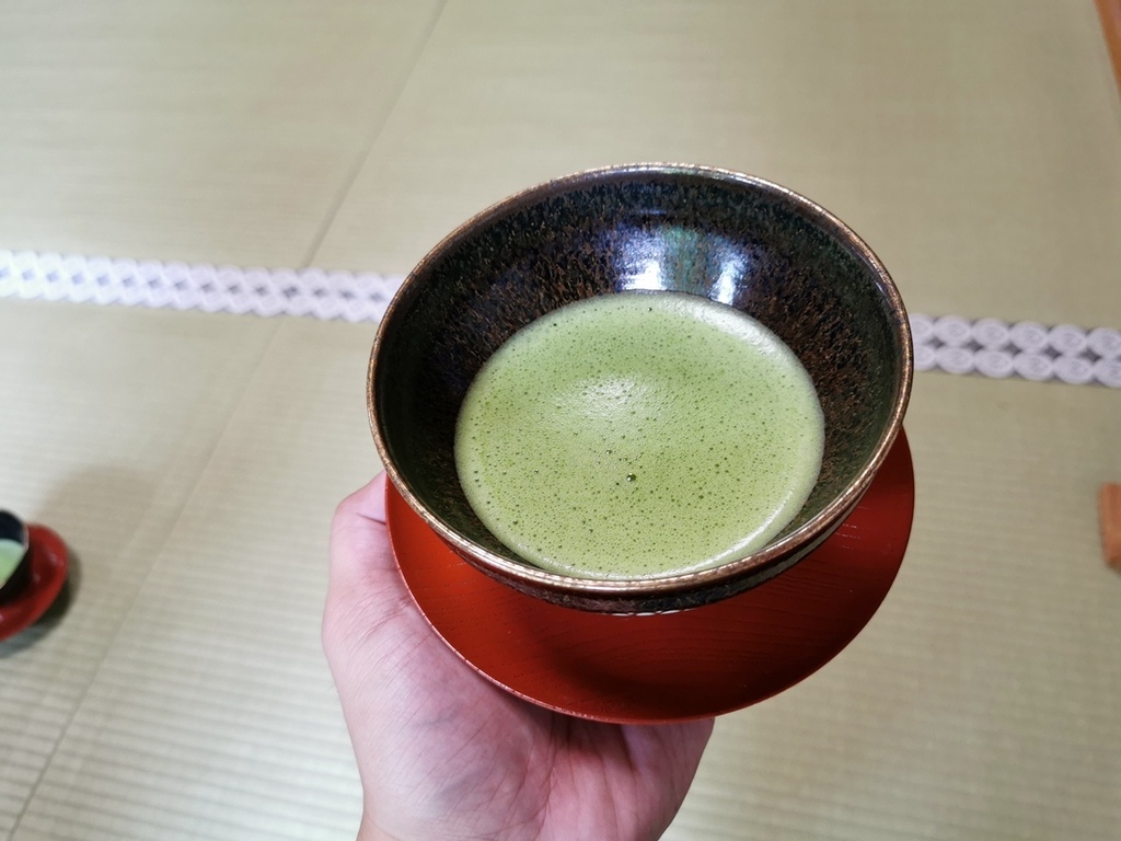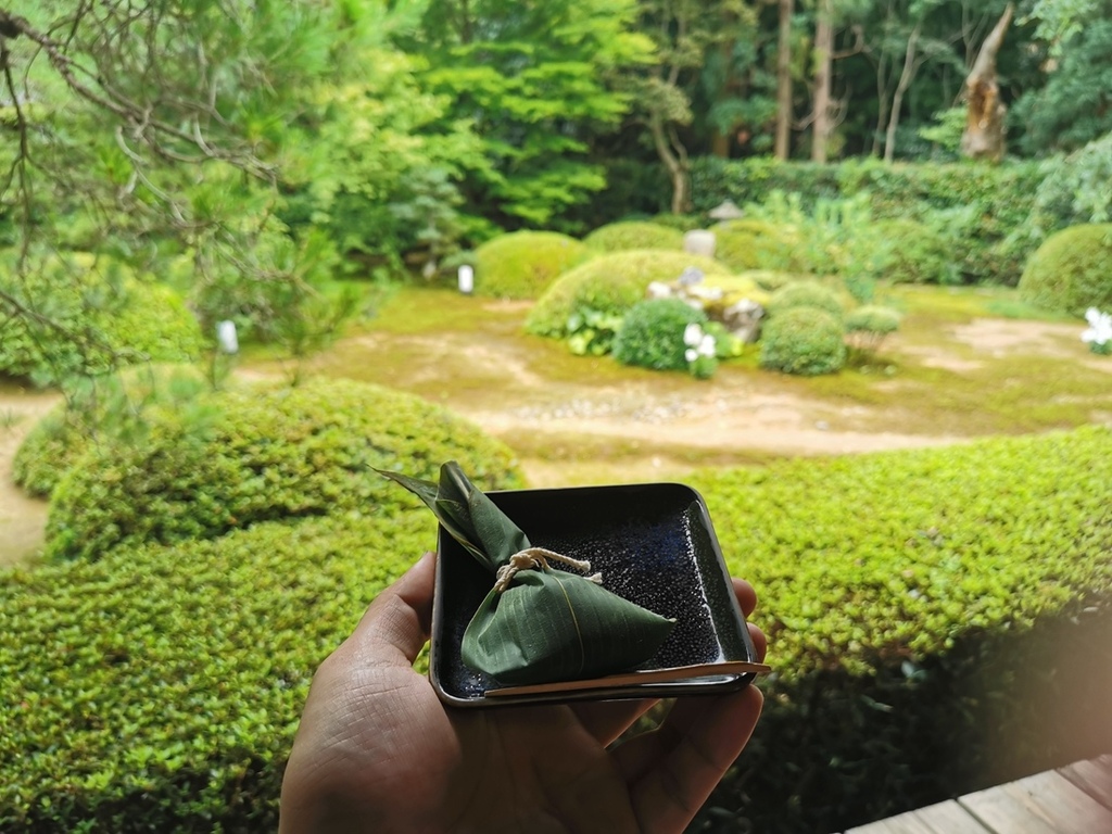 你可以拿著寺方準備的點心,在庭院風景前品嘗果子,放空,自在